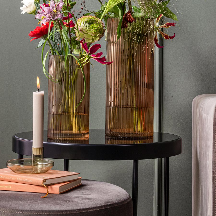 Sand brown glass candle holder.