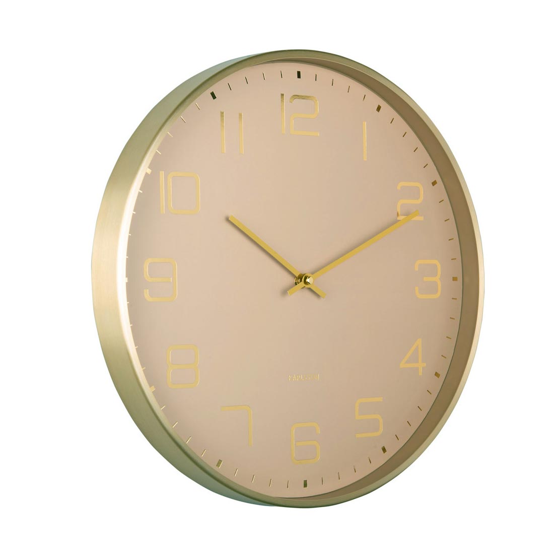 Aluminium clock. Brushed gold frame, soft brown face.