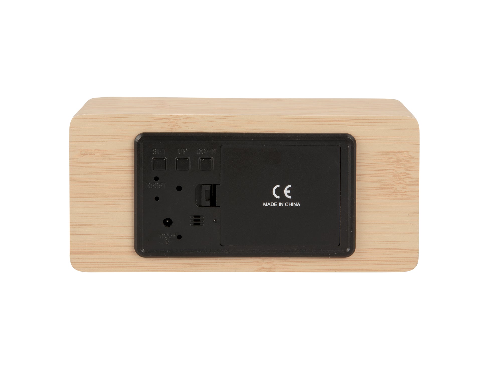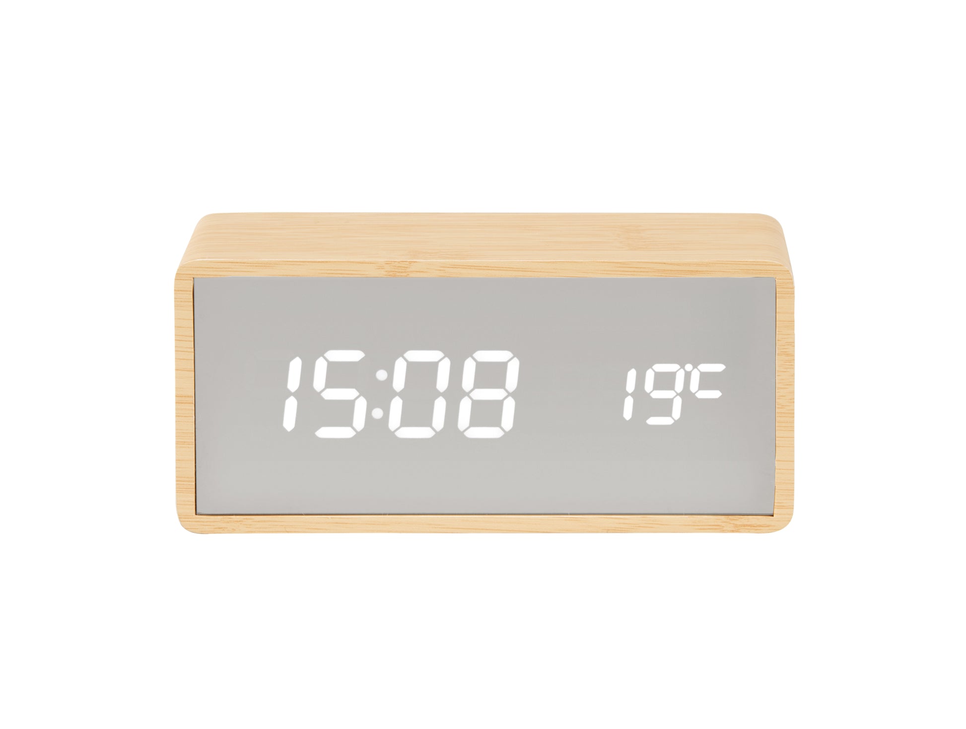 Silver Mirror LED Alarm Clock (USB) - Light Wood