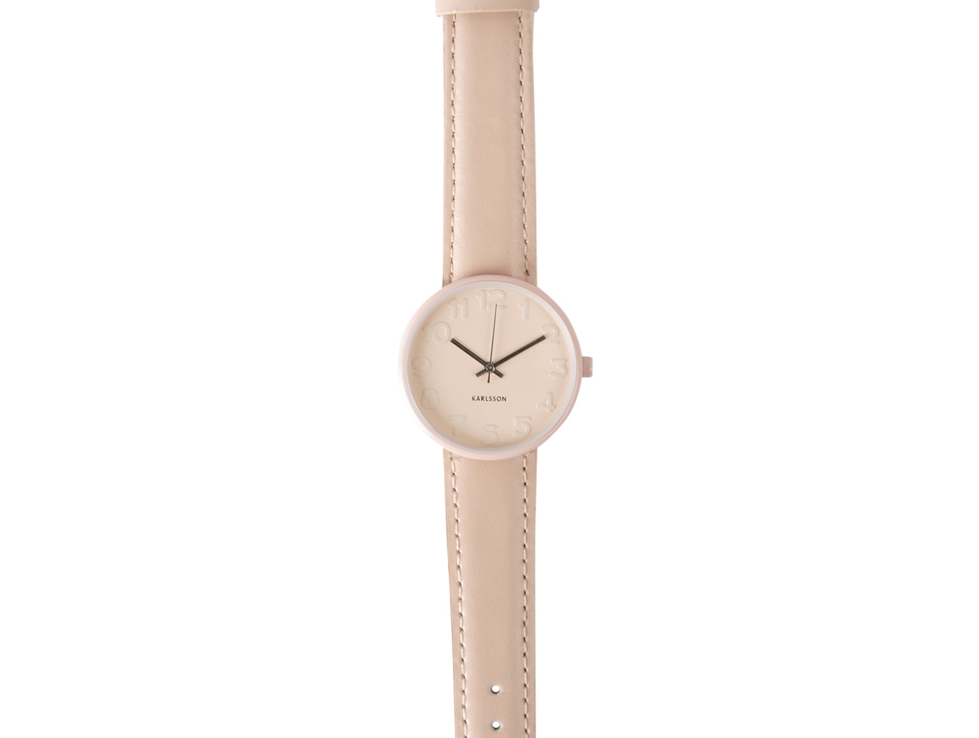 Women's watch with a pink leather strap, pink dial and pink casing.